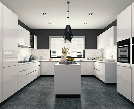 U-shaped kitchens don’t have to be small, stuffy, and cluttered. Do not overload the modular kitchen with too many appliances and accessories it’s possible to create a very neat and functional kitchen.
